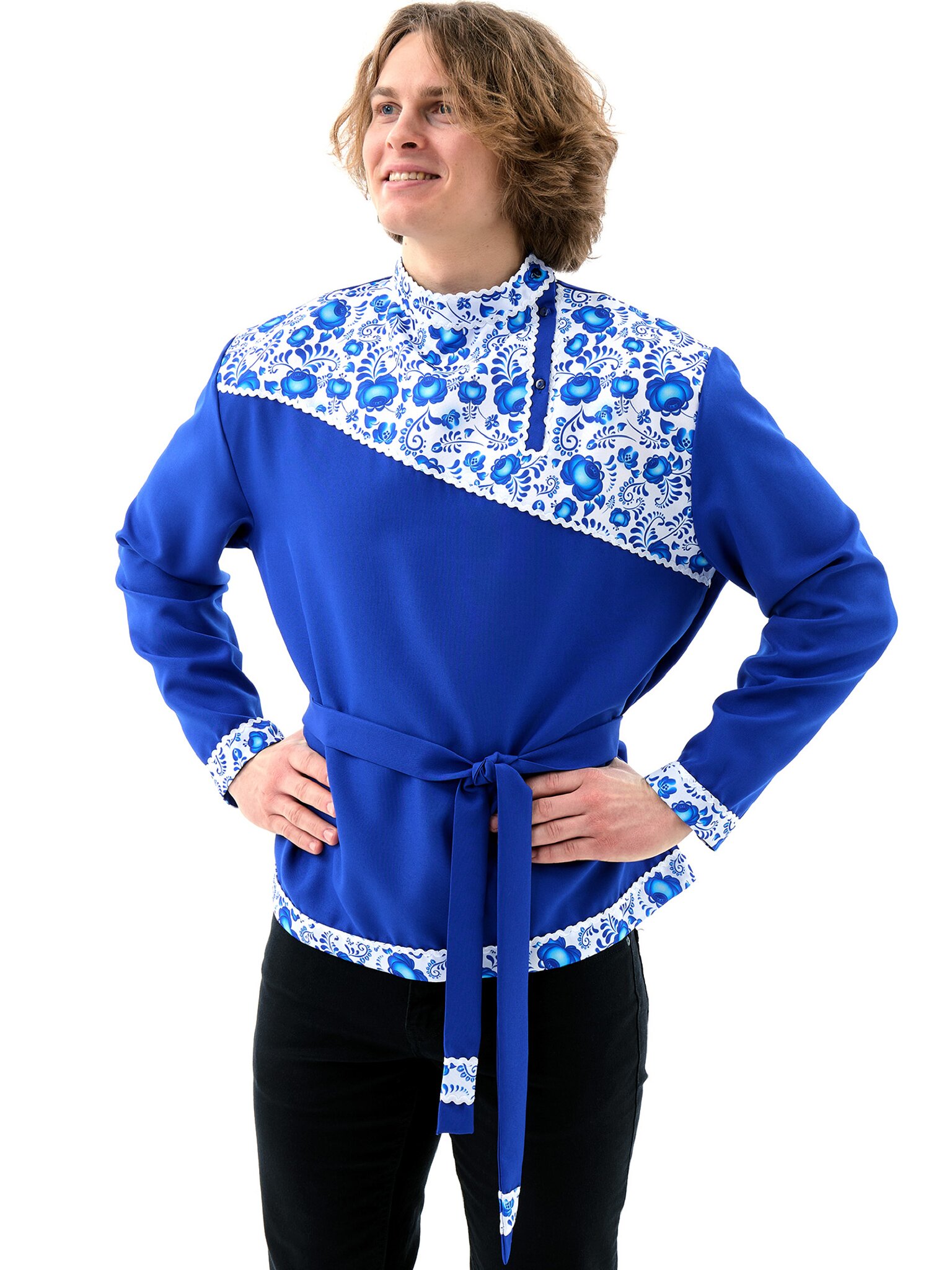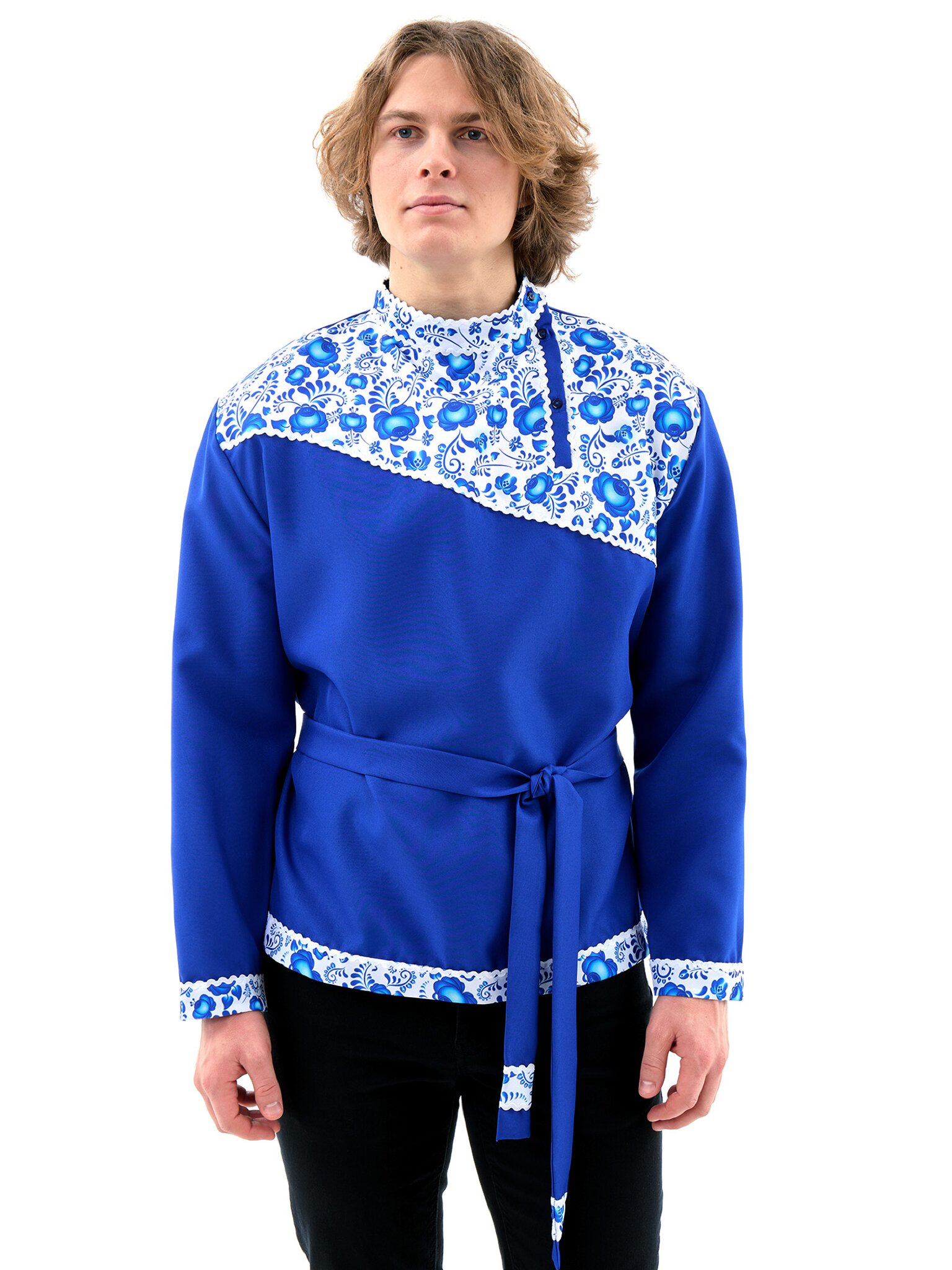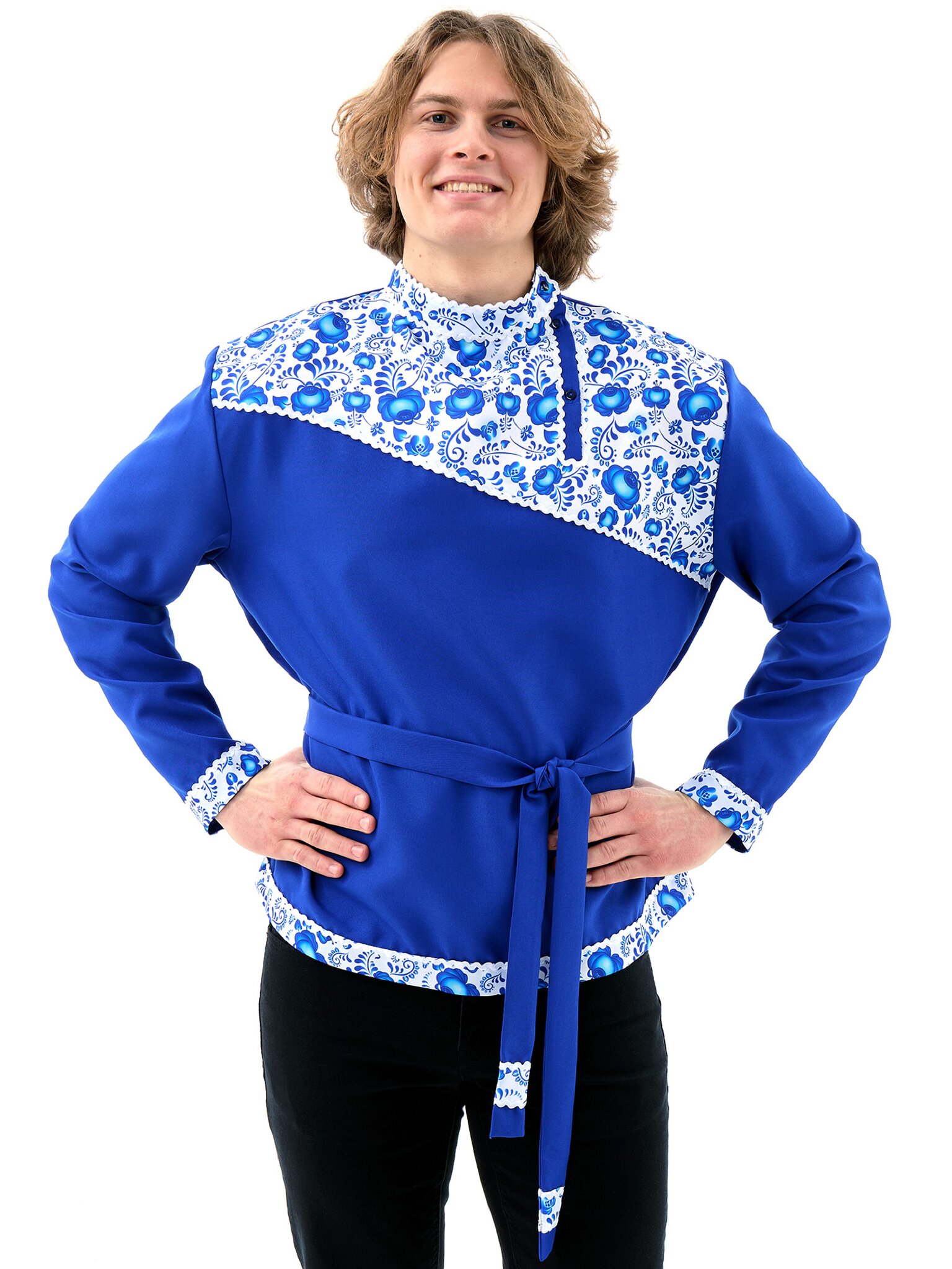 Русская народная косоворотка "Гжель" - идеальный выбор для взрослых мужчин. Изготовлена из качественного габардина, синего цвета, она подчеркнет вашу индивидуальность на праздниках, таких как Масленица. Превратите обычный день в сказочное приключение!