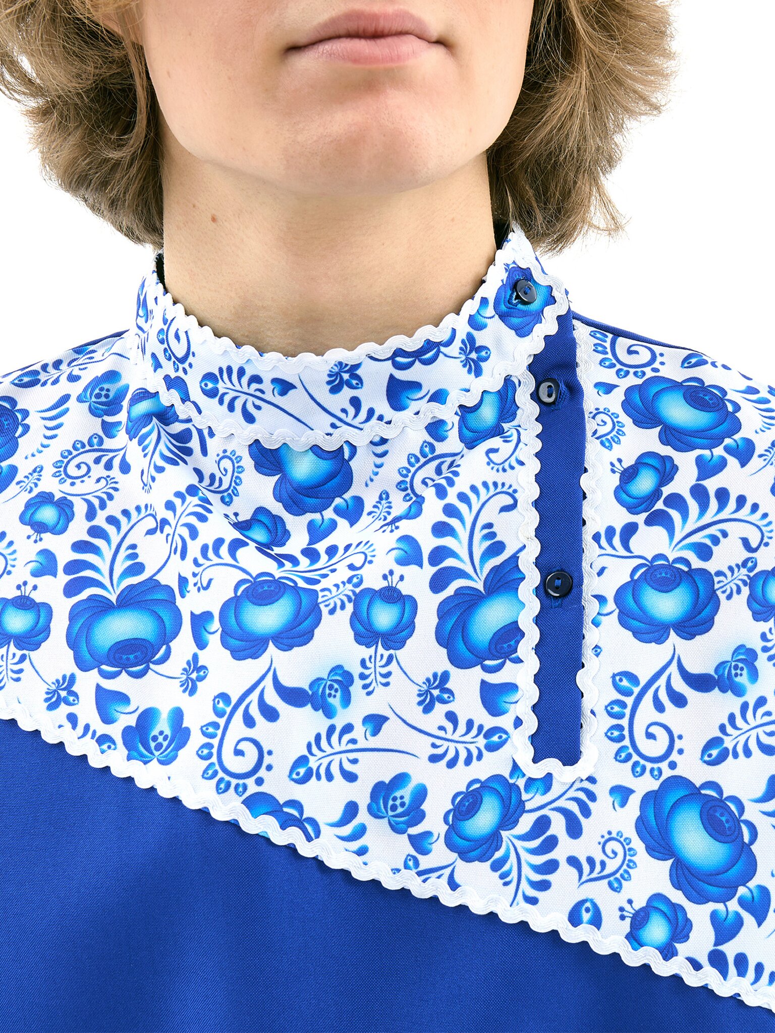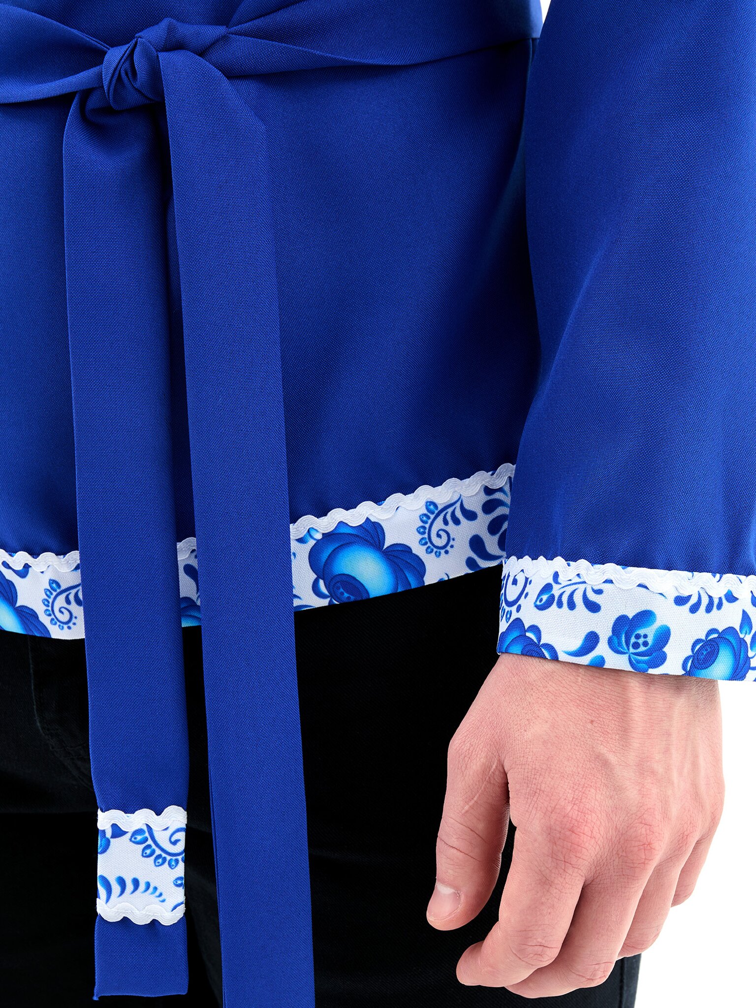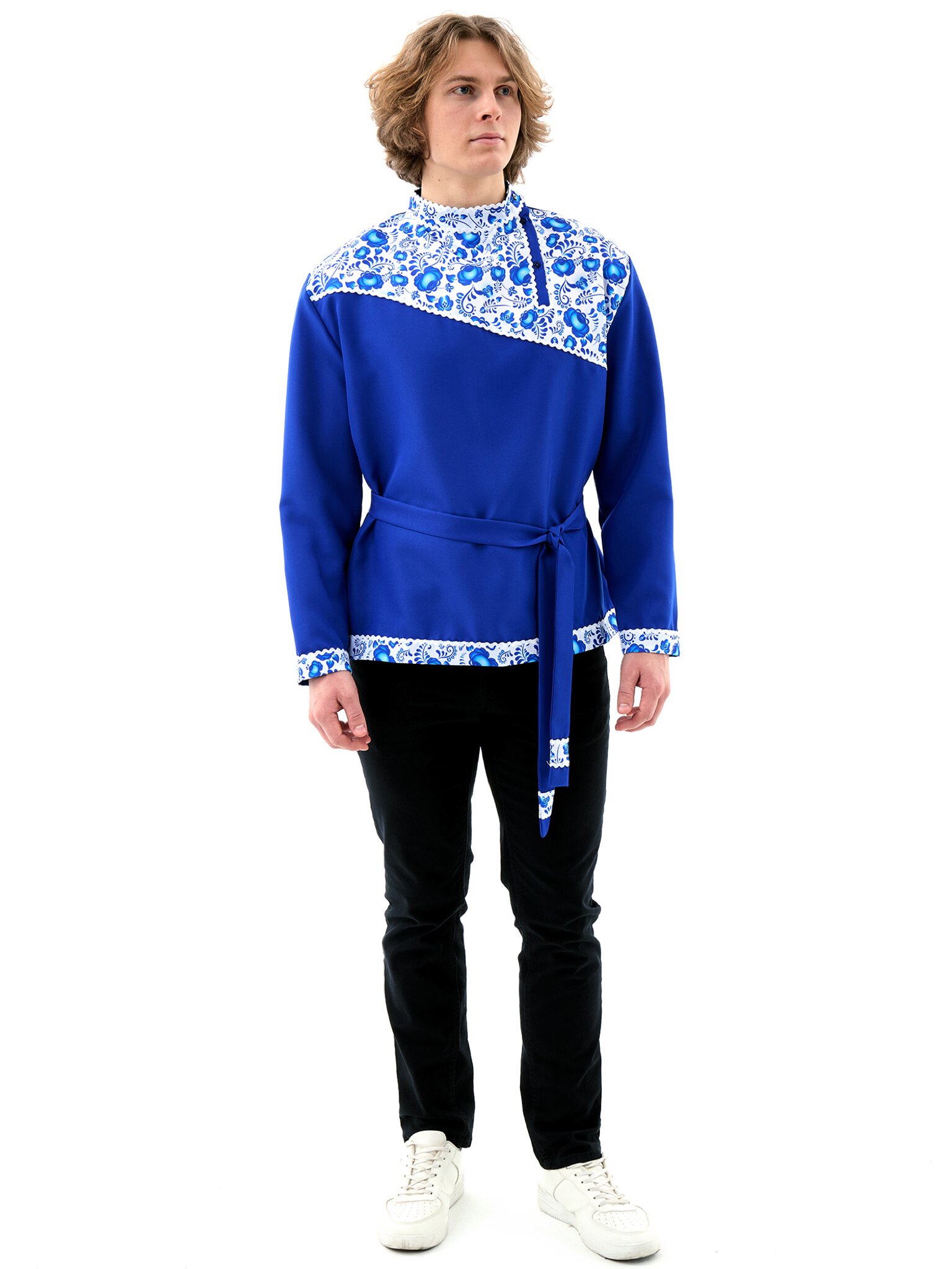 Русская народная косоворотка "Гжель" - идеальный выбор для взрослых мужчин. Изготовлена из качественного габардина, синего цвета, она подчеркнет вашу индивидуальность на праздниках, таких как Масленица. Превратите обычный день в сказочное приключение!